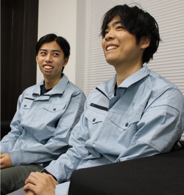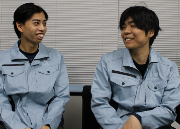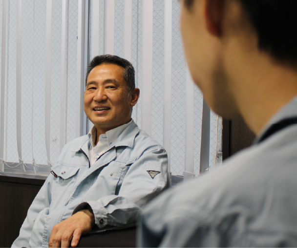 将来的に建物における工事であれば何でも請け負えるようになりたいと考えていてね。でも、僕自身も僕が社長になってから一緒に頑張ってきたメンバーも最前線に立ってチャレンジするのが難しい年齢になってしまった。そこで、まだまだ何にでもチャレンジ出来て、やる気に満ち溢れた大卒の君たちに入社してもらい、これからの会社を創って欲しいと思ってるんや。